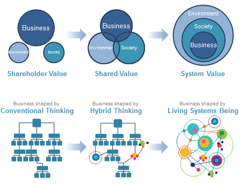 - A shift in perspective is emerging, from perceiving the organisation-as-a-machine to perceiving the organisation-as-a-living-system. To help facilitate the resilience of our living systems, we need to sense-and-respond to ever-changing systemic relations. This requires not just systems-thinking but also ‘living-systems-being’;